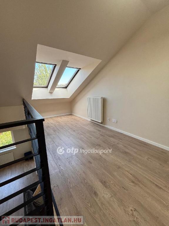 A lakás gyakorlatilag egyben van. Hatalmas belmagasság, hatalmas tér. Terasza és amerikai konyhás nappalijának ablaka az udvari fák koronáira néznek. Nincs szükség függönyökre, nem lehet belátni. Keleti fekvése miatt az egész lakás kora délutánig úszik a napfényben, délután a nyugati oldal ablakai miatt világos. A képek kíválóan visszaadják a lakás fiatalos elosztását. A földszinten amerikai konyhás nappali, gardrób, kádas fürdőszoba WC-vel, 4 négyzetméteres terasz van. Az emeleten hálószoba, tusolós fürdőszoba WC-vel, illetve egy nappalinak avagy hálónak használható tér, egy légtérben a földszinttel. A képeken látható bútorok alku tárgyát képezhetik.