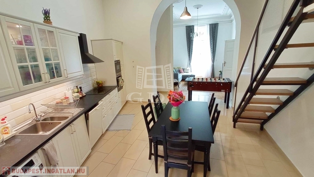 Corvin-negyed mellett kínálok eladásra egy gyönyörűen FELÚJÍTOTT igényesen berendezett, 1. emeleti, NAPFÉNYES, 118 nm-es,