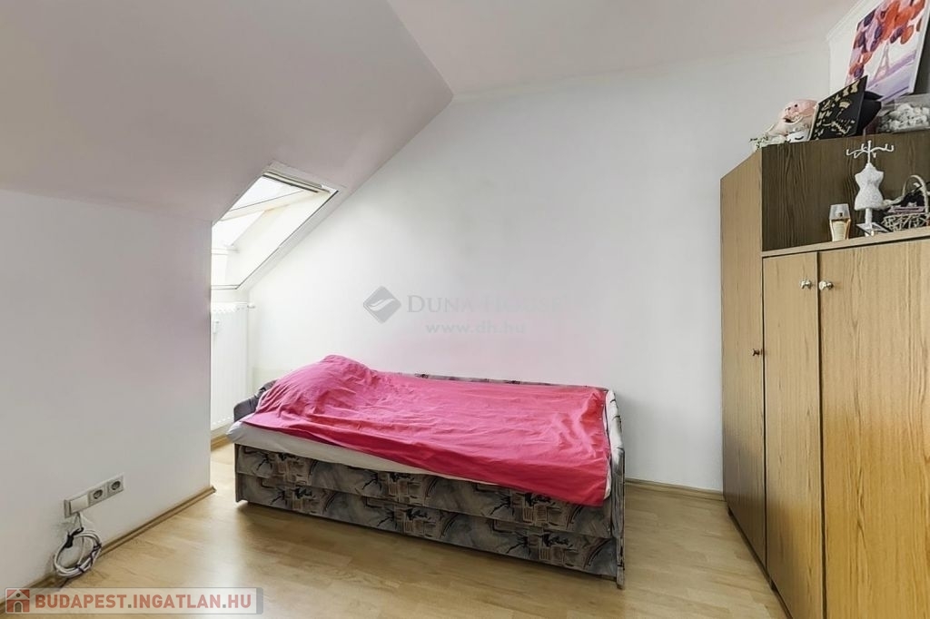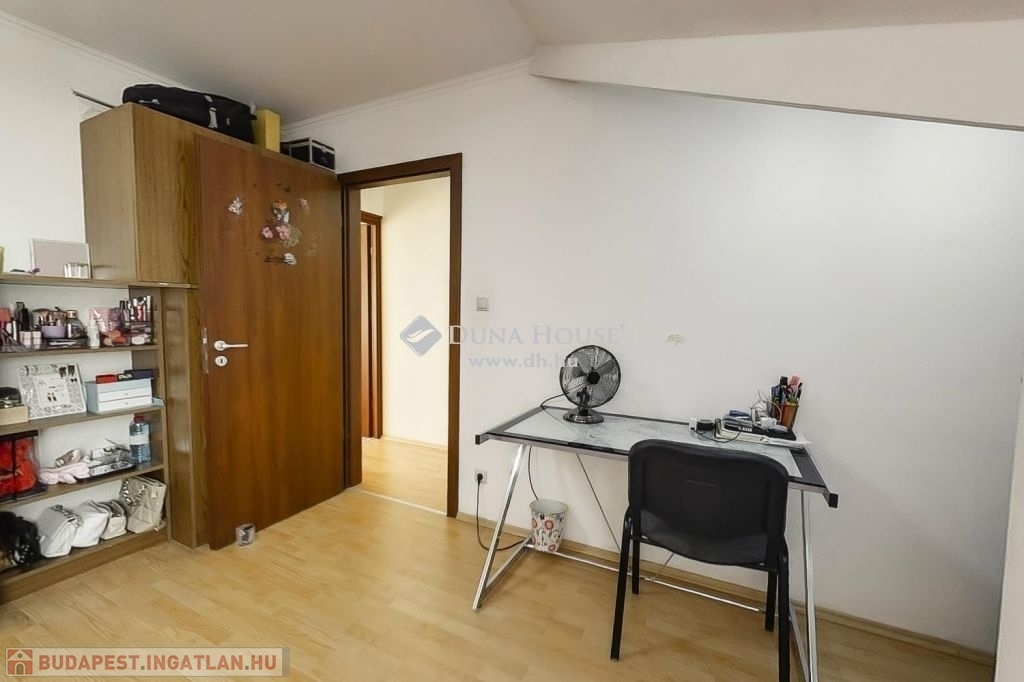 Eladó egy kétszintes lakás a a Százados út legjobb társasházban, ami egy önálló zárt lakókörnyezet, játszótérrel, parkkal és parkolókkal.Az alsó szinten kapott helyett egy nagy nappali + lodzsa, konyha, halószoba, fürdő, wc, kamra és egy gardróbszoba ahonnan lépcső vezet fel az emeletre.