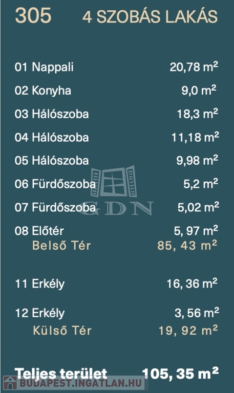 Méret: 85 négyzetméter