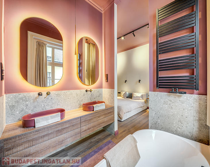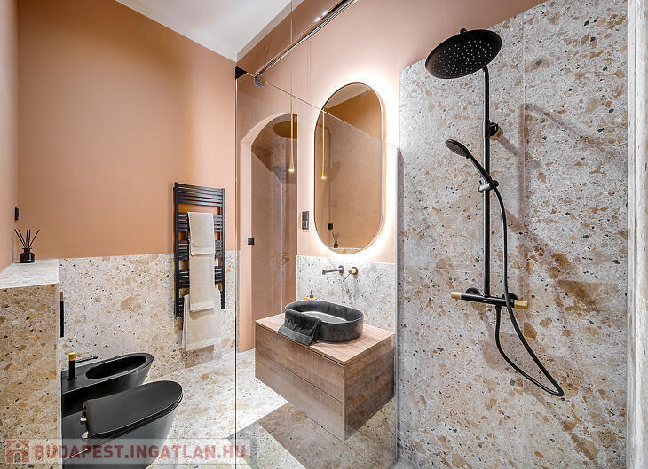 A lakás burkolatai prémium minőséget képviselnek: A vizes helyiségekben olasz Ariostea hidegburkolat található, amely nagy ellenálló képességű, elegáns felületeivel a kortárs design egyik vezető választása – luxushotelek és exkluzív középületek kedvelt anyaga világszerte.