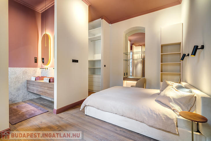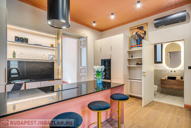 Az enteriőr kialakítása egy belsőépítész gondos munkáját dicséri – a jelenlegi berendezés döntő része; így a beépített bútorok és gépesítés is a vételár részét képezik.