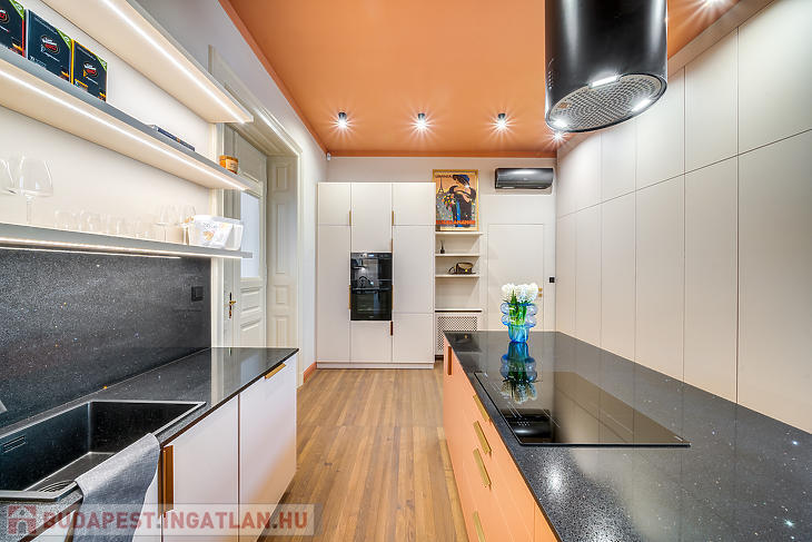 Eladó egy exkluzív, teljes körűen felújított lakás a Palotanegyed egyik elegáns, liftes társasházának magas emeletén.
