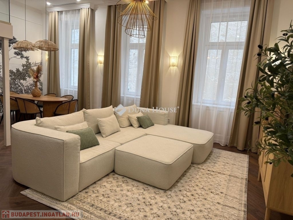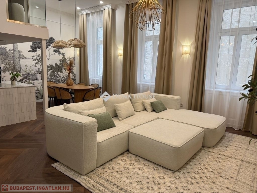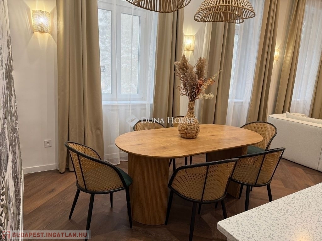 a Bródy Sándor utcában kínálunk eladásra egy 70 m²-es + 9 m² galériás, teljesen újragondolt, prémium műszaki tartalommal rendelkező belvárosi lakást, 6 m² saját pincével.Ez nem egy felújított ingatlan ez egy mérnökileg és esztétikailag végigtervezett otthon.Az ingatlan teljes körűen, alapig visszabontva újult meg:új réz elektromos hálózat, új gépészet, minőségi burkolatok, egyedi asztalosmunkák. Az eredeti, több mint 100 éves beltéri ajtók felújítva megmaradtak karaktert adva a modern térnek.A fűtéshűtés egy 7,5 kW-os, légcsatornázható LG rendszerrel megoldott, frisslevegős kivitelben, mennyezeti befúvókkal így az ingatlan egész évben komfortos, ablaknyitás nélkül is.A fürdőszobában elektromos padlófűtés és 120 literes, wifis Ariston bojler biztosítja a kényelmet.A nappalihoz kapcsolódó, teljesen zárt, üvegfallal leválasztott 9 m²-es galéria valódi hálószobaként funkcionál.A konyha egyedileg gyártott, BOSCH gépekkel, hőálló Staron munkapulttal és konyhaszigettel felszerelt.Az épület kívül-belül rendezett, felújított homlokzattal, 2 lifttel, kamerarendszerrel és jó lakóközösséggel.Ez az ingatlan nem tömegigényre készült.Azoknak szól, akik értik a minőséget, a technikát és az egyediséget és nem a kompromisszumot keresik.Az ingatlan vételára tartalmazza teljes butorzatot és a gépeket is. Hívjon akár hétvégén is!