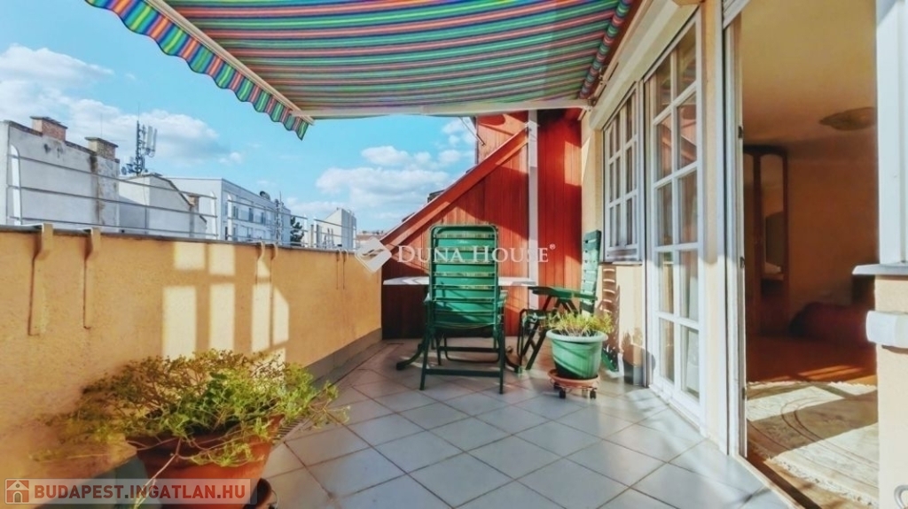 PALOTANEGYEDBEN ELADÓ EGY DUPLEX, TETŐTERASZOS ÉS ERKÉLYES LAKÁS, GYÖNYÖRŰ, BELSŐ PARKKAL RENDELKEZŐ 2002-BEN ÉPÜLT TÁRSASHÁZBAN!Az ingatlan tulajdoni lapon 95 négyzetméteres. Két szintes. Az alsó szinten konyha, nappali, kamra, wc, fürdőszoba és egy kis háló található. A nappali erkélyes. A felső szinten egy tágas szoba kandallóval és egy nagy terasszal ad élményt a tulajdonosoknak.Minden nyílászáró műanyag és redőnyös!Az ingatlan szép napos és panorámás a kilátás! A fűtést és meleg vizet cirkó kazán biztosítja.Mind a kettő szint klimatizált!A lakás a teljes bútorzattal együtt eladó!A társasház egy különleges épület az utcában. Belső kertje, parkja van szökőkúttal. Lakóközösség nagyon jó! Az épületnek van saját garázsszintje, de sajnos ehhez a lakáshoz már nincs meg a garázs. Parkolási lehetőség az utcán megoldható.Kérem keressen bizalommal bárminemű kérdése van az ingatlannal kapcsolatban!Ajánlom Mindenkinek aki szépérzékkel rendelkezik és a belvárosi életet habzsolja.