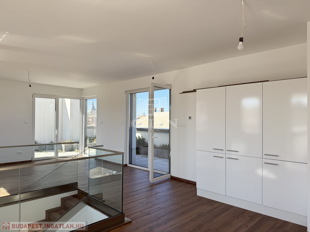 VIII. kerület csendes, mégis központi részén, új építésű ház legfelső szintjén kínálunk megvételre egy belső kétszintes, kulcsrakész, penthouse lakást, páratlan kilátással a Gellért-hegyre és a Hármashatár-hegyre, az alábbi paraméterekkel: