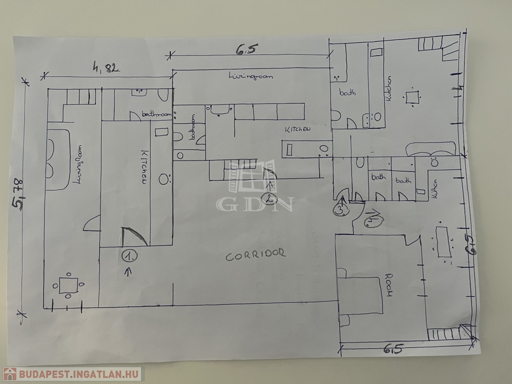 Lakás 4: 3 szoba + konyha,2 fürdő külön WC, nappali.