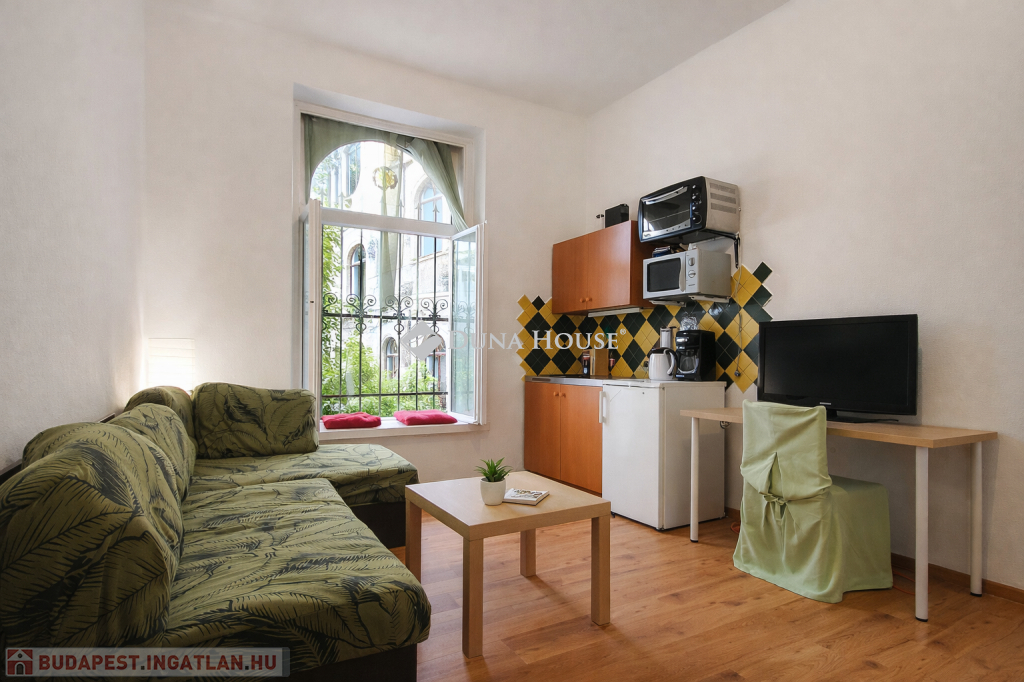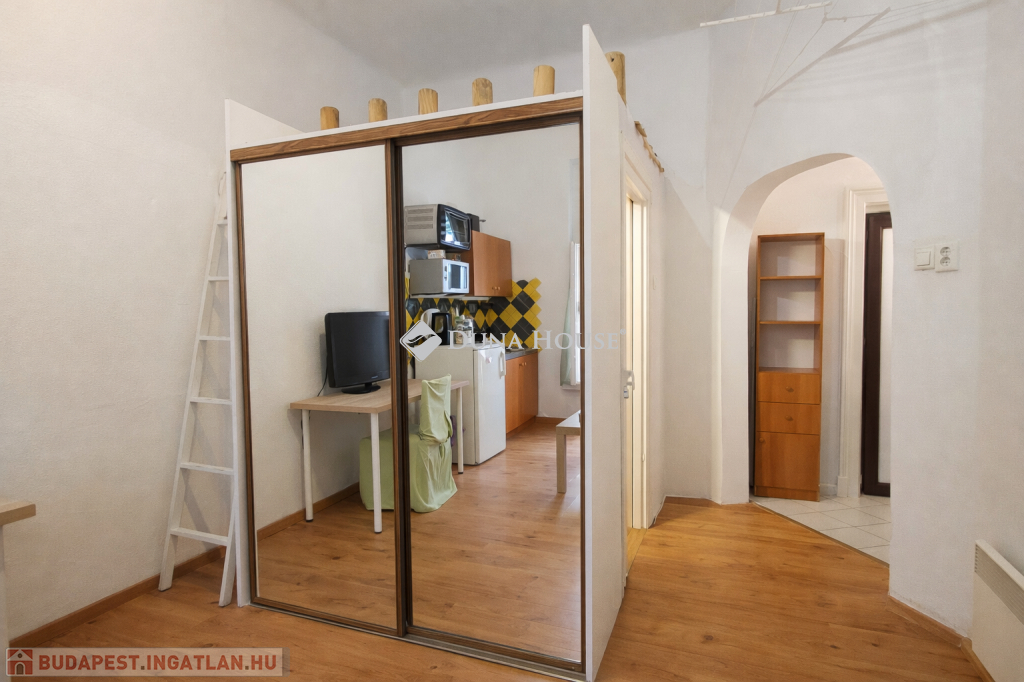 Pesti garzon ősfás kertben (ENG below)Az ingatlan jellemzői:- 25 m² teljes használható lakótér:- 19m² a tulajdoni lapon- 3,5 m² fekvőgaléria- kb. 2 m² lakáshoz tartozó és amellől nyíló háztartási tér- 4 m feletti belmagasság- Újszerű fürdőszoba sarokkáddal- Előretöltős és éjszakai mérő- Programozható fűtésrendszer- Alacsony fenntartás 6555 Ft közös költség korlátlan vízfogyasztássalKiváló elhelyezkedés Budapest belvárosában:- Pár perc sétára a metrómegállóktól (M4, M2) - Csendes, zárt belső parkos környezetA Rákóczi útról az ősfás kertbe érkezve egy felújított, neoromán stílusú, jelenleg kulturális térként működő templom mellett halladunk el. Nagyjából 100 méterrel beljebb egy 2 emeletes épület található, amely az 1800-as években iskolaként üzemelt. A helytörténeti cikkek szerint itt tanult Petőfi Sándor.Az itt lakók Luther utca és a Kiss József felöl is bejuthatnak.Az epületbe lépvén pár lepcsőfok vezet a magasföldszinti egykori parókiába, ami home officenak lett kialakítva.Az társasházban az Airbnb üzemeltetés a társasház által engedélyezett. Az ingatlan saját otthonnak vagy befektetésnek is ideális a belvárosi lokáció és az alacsony fenntartási költség miatt.------------------------------------------------------------------------------------