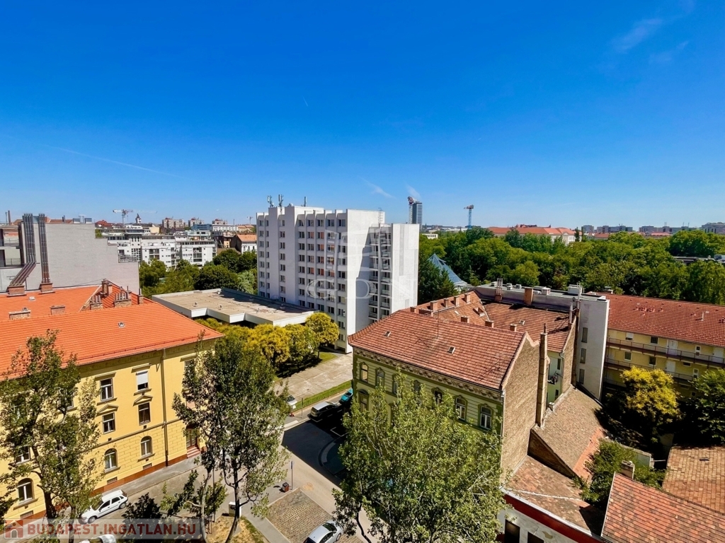 Eladó egy magas emeleti, keleti fekvésű, napfényes, a Füvészkertre panorámás kilátással rendelkező, 31,42 m²-es, kiváló állapotú garzonlakás a Corvin negyed egyik legkeresettebb részén.
