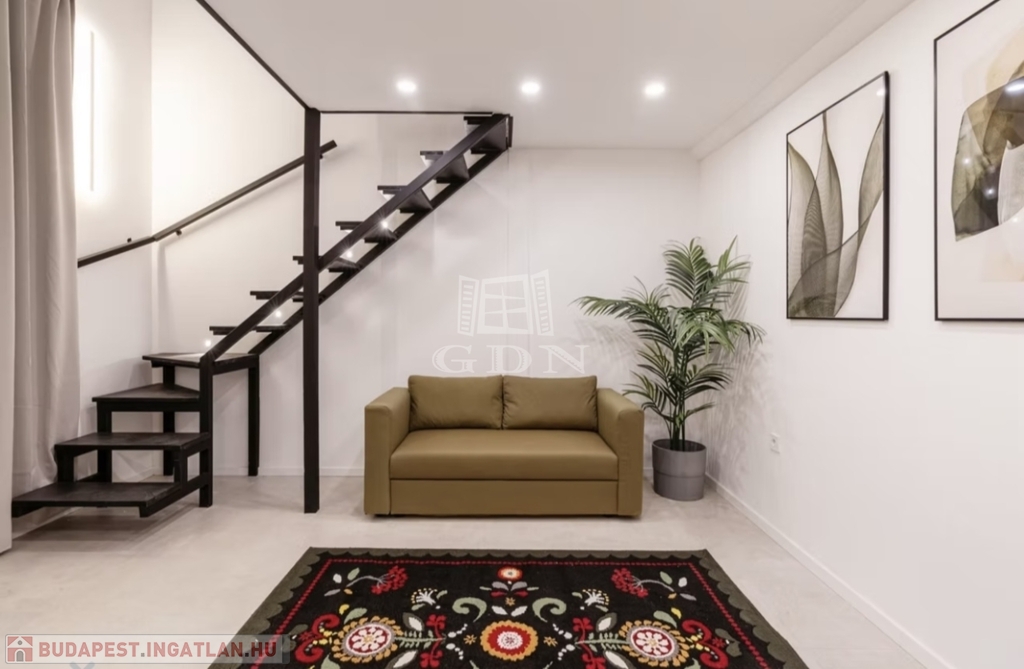 A lakás tényleges alapterülete 31 m², míg a tulajdoni lapon 27 m² szerepel. A több mint 4 méteres belmagasságnak köszönhetően teljes értékű galéria került kialakításra, amely külön hálórészként funkcionál. A galériával együtt a lakás teljes használható alapterülete 40 m².