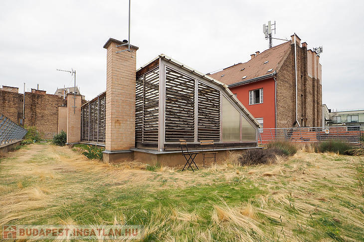 A társasház tetején a lakók kizárólagos használatában lévő tetőterasz található, amely zöldterületet biztosít a belváros szívében.
