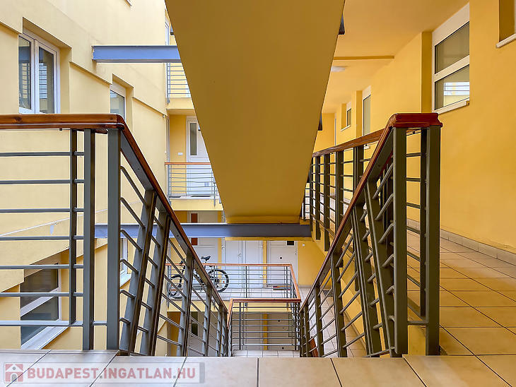 Gépkocsibeállóval rendelkező, 2000-ben épült liftes társasházban lévő emeleti, utcai nézetű lakás eladó.