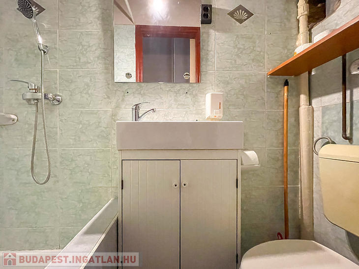A faparkettás, két ablakos szoba igény szerint leválasztható, jelenleg a 3,65 m belmagasságot kihasználva hálógaléria került kialakításra. A fürdőszoba zuhanyzós, a konyha praktikus elrendezésű.