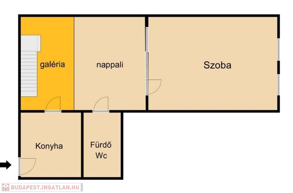 A konyhából jobbra nyílik a nappali, világos, tágas tér, fölötte a 10,5nm -es galéria, amely hálóként vagy dolgozósarokként is kiválóan használható.
