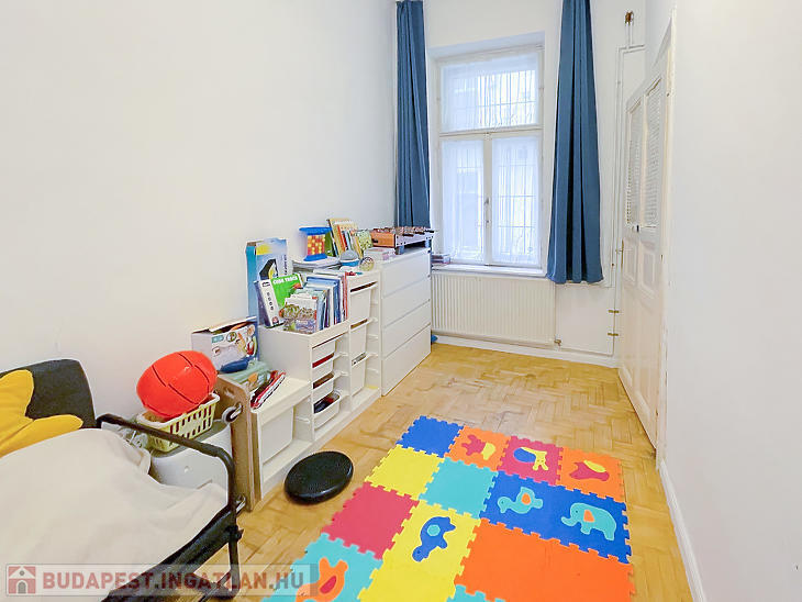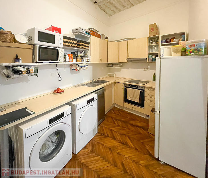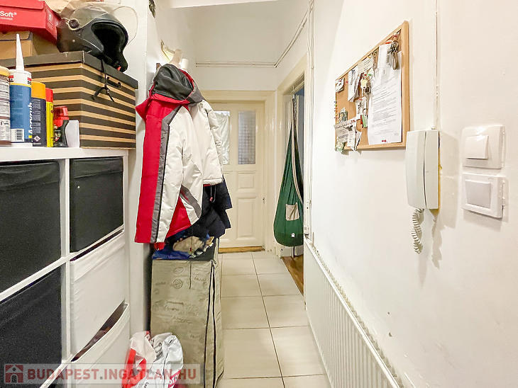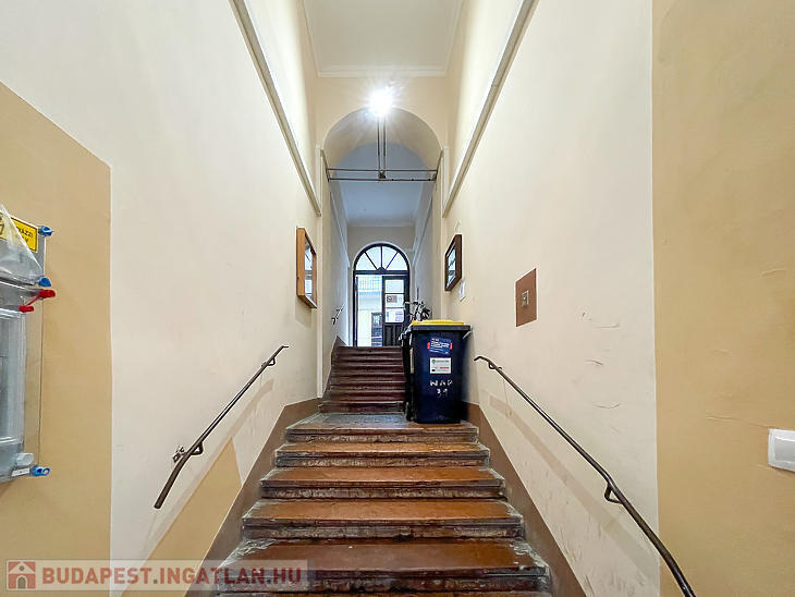 Corvin negyedben első emelet magasságában lévő, de ingatlan-nyilvántartás szerint földszinti, világos lakás eladó.