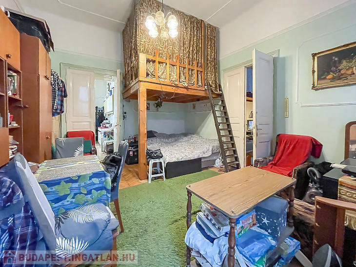 Az ingatlan két szobás, konvektoros fűtéssel rendelkezik. A 3.9 méteres belmagasságot kihasználva állógaléria van a szobákban. Fürdőszobája kádas, a melegvizet elektromos bojler biztosítja.