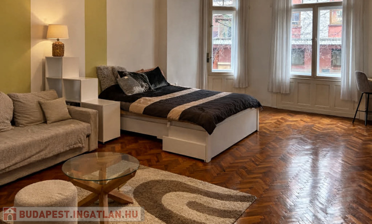 A lakás 1. emeleti, 52 nm, 1 szobás, a Corvin mozi és a Corvin plaza bejáratától, Corvin köztől 100 m-re.