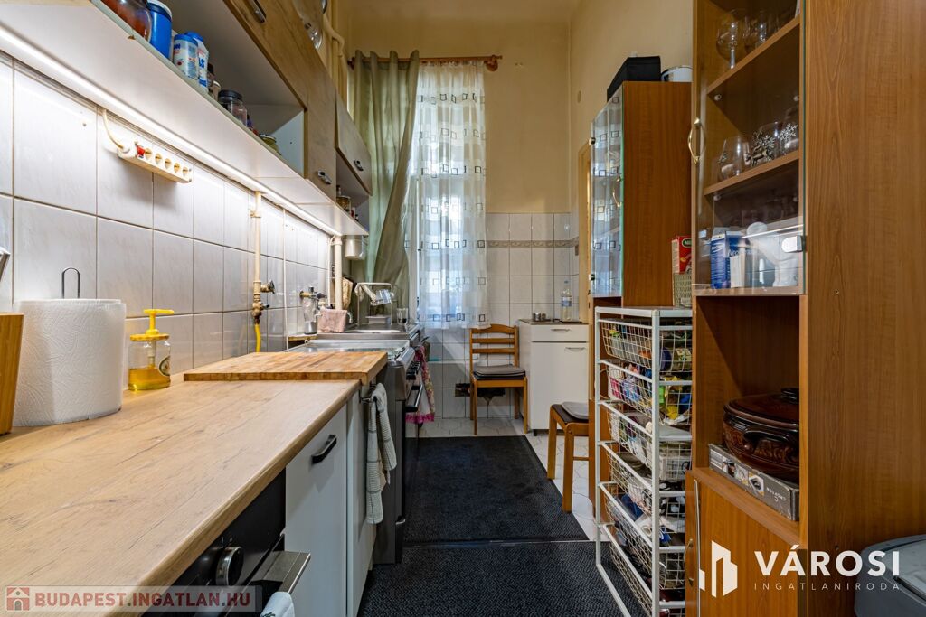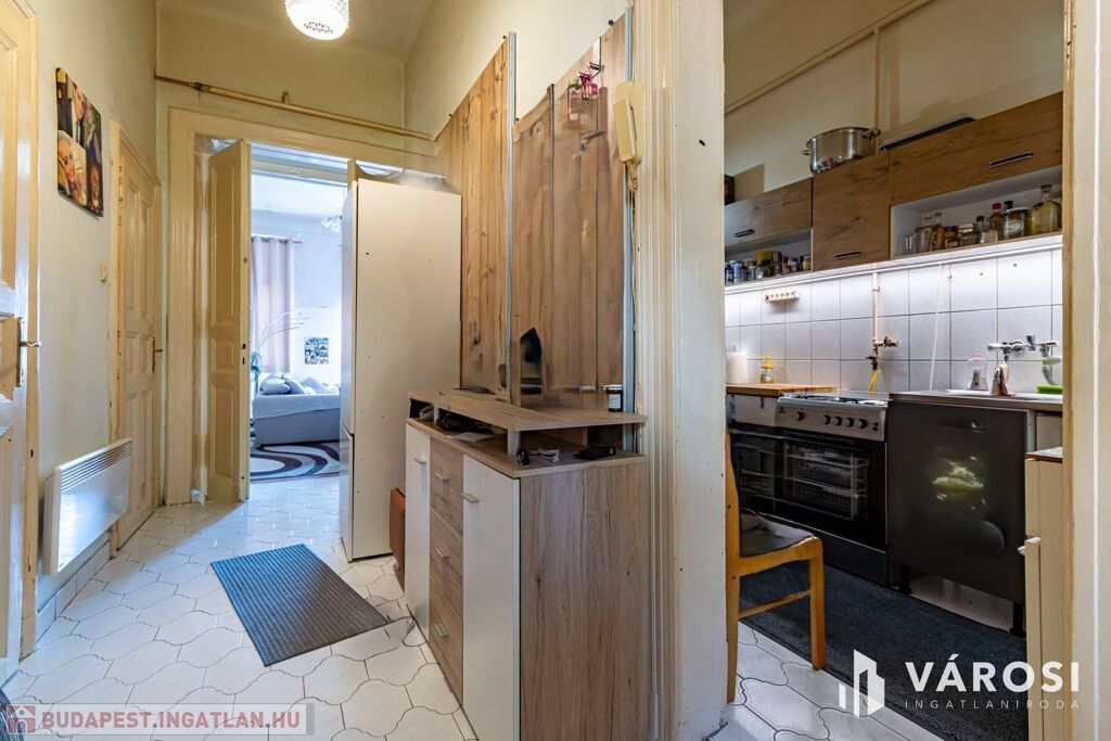 For sale in Budapest’s 8th district, on II. János Pál pápa Square,a bright, second-floor, two-room apartment, which can beconverted into a three-room layout if desired.