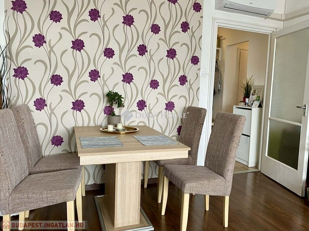 örök kilátással a Gellért-hegyre!Budapest VIII. kerületében, a Corvin negyed közvetlen szomszédságában kínálunk megvételre egy 13. emeleti, 54 m²-es, 2 szobás, 8 m²-es loggiával rendelkező, örökpanorámás, rendkívül világos és jó állapotú lakást.A lakás egyik legnagyobb értéke a lélegzetelállító panoráma a Gellért-hegyre, amely ebben a városrészben igazi ritkaságnak számít.Társasház:Az épület az elmúlt években folyamatos korszerűsítésen és karbantartáson esett át:- 3 db felújított lift- Rendezett, tiszta lépcsőház- Jó lakóközösség, stabil működés A lakás elrendezése (54 m² + 8,19 m² loggia)Praktikus, jól átgondolt alaprajz:- Előszoba: 4,96 m²- Tágas, ablakos konyha: 7,82 m²- Nappali: 18 m² innen nyílik a 8,19 m²-es erkély- Hálószoba: 12 m²- Fürdőszoba: 3,37 m²- Külön WC: 0,88 m²- Folyosó gardróbbal: 3 m²A szobák déli fekvésűek, a konyha nyugati tájolású, így a lakás egész nap világos, napfényes. Műszaki állapot- A lakás 4-5 évvel ezelőtt, három ütemben teljes körű felújításon esett át:- Nyílászárók cseréje- Villanyvezetékek cseréje- Teljes gépesítés (mosógép, mosogatógép, klíma)A lakás bútorozott, a berendezés a vételár részét képezi így akár azonnal költözhető vagy kiadható. Fenntartási költségek:- Közös költség: 13.000 Ft / hó- Fűtés: távfűtés- Teljes rezsi: fogyasztás alapján kb. 40.000 Ft / hóKözlekedésKiváló infrastruktúra és közlekedés:- 72-es és 83-as troli- 9-es busz- 4/6-os villamos- 3-as metró Corvin-negyed és Klinikák megállóKörnyék:- A Corvin negyed közelsége miatt minden néhány percen belül elérhető:- Éttermek, kávézók, üzletek, szolgáltatások közel 100 egység- Egyetemek: Semmelweis Egyetem, Pázmány Péter Katolikus Egyetem, Nemzeti Közszolgálati Egyetem- A megújult Orczy-kert kiváló kikapcsolódási lehetőséggelEz a lakás ideális választás saját otthonnak vagy befektetésnek egyaránt panorámája, elhelyezkedése és állapota miatt kiemelkedő lehetőség a piacon.