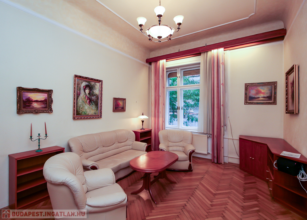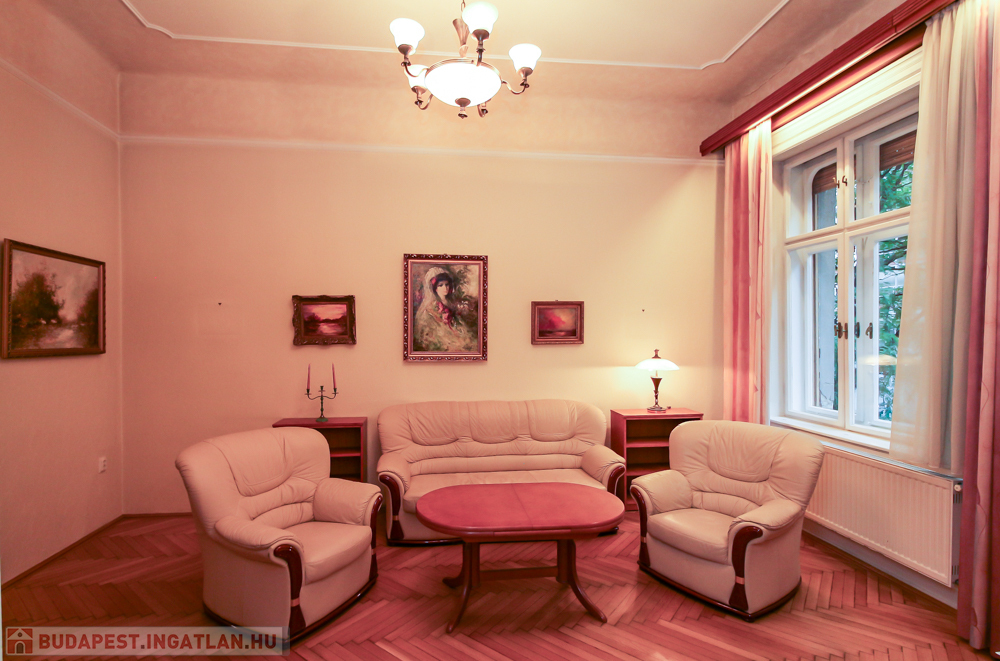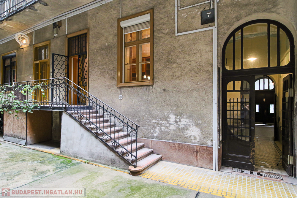 Az eladásra kínált ingatlan Budapest VIII. kerületében, a Fűvészkert közvetlen szomszédságában egy 1900- 1915. körüli építésű kulturált állapotú polgári társasház magasföldszintjén helyezkedik el, ablakai utcai nézetűek.
