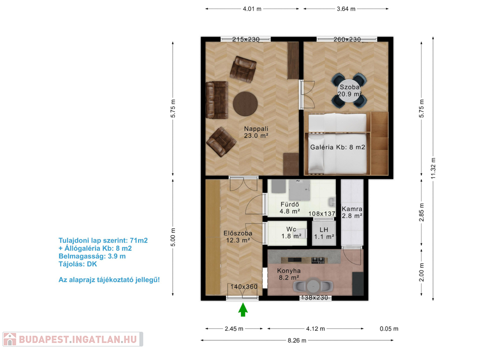 A 71 m²+ galéria kialakítású lakás 2000-ben került teljeskörű felújításra, ennek során figyelembe véve a miliő megtartását, annak szintjének emelését a beépített bútorok tekintetében is. Melegvíz- ellátása és fűtése gázkazánnal üzemel, utóbbi lapradiátoros hőleadással. Nyílászárói Gerébtokosak, fából készültek és redőnnyel felszereltek. Az ingatlan jelenlegi állapota a felújítás óta eltelt 25 évet nézve, műszaki szempontból a mai kor követelményei szerint közepesnek mondható. Mindazonáltal ez a lakás valóban megvigyázott, szép állapotú.A képeken látható beépített és szabadon álló gépek, bútorzat a kínálati ár részét képezik.
