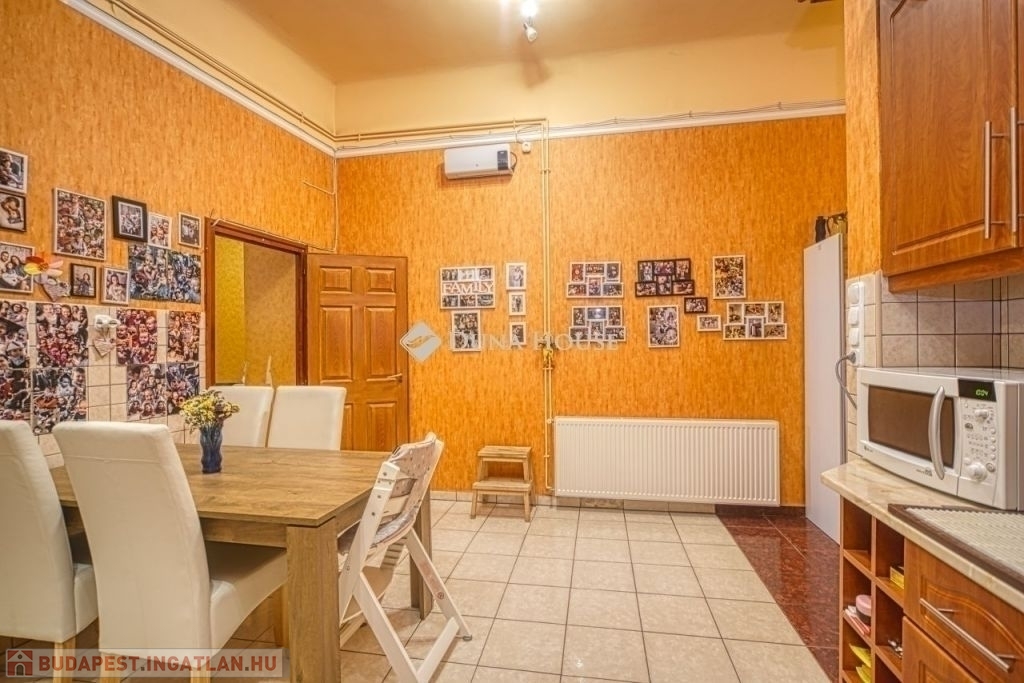 egy harmadik emeleti, 86 nm-es tulajdon lap szerint 2 szobás, az átalakítást követően 4 db ½ szoba került kialakításra, és egy teljes értékű szoba.Az ingatlan jó állapotú tisztasági festéssel költözhető.Kiemelném a társasházban nincs lift.Az ingatlanba belépve az előszobából balra nyílik egy lakószoba, a tágas közlekedőből nyílik a kamra, a fürdőszoba, a wc, a jelenlegi tulajdonos átalakításának köszönhetően a 26,7 m2-es amerikai konyha+nappali étkező a családi élet színtere lehet, ezenkívül, hálószoba, gyerekszoba, és egy lakószoba került kialakításra.A családi otthon az alábbi korszerűsítésen esett át:- villanyvezeték hálózatot korszerűsítették,- az ablakok korszerű műanyag nyílászárók,- 2022 ben kondenzációs kazán került beépítésre,- kiegészítő fűtésként elektromos panelek állnak rendelkezésre,- a burkolatok cseréje megtörtént,- a padlózatot újra betonozták.A közös költség 40,595, Ft, mely tartalmazza a takarítást a szemétszállítást, és a felújítási alapot is.A gáz, a víz és a villany fogyasztás egyedi mérés alapján történik.A vételárrészét képezi a beépített, gépesített konyhabútor és az elektromos fűtőpanelek.Autóval a parkolás az utcán lehetséges, a lakóknak egyszeri díjat kell fizeni az önkormányzatnak.Ajánlom befektetőknek, családosoknak, de felsőoktatásban tanulók számára is kiváló választás, mivel az egyetemek könnyedén és gyorsan megközelíthetőek.A lakás könnyedén ketté osztható, a kiadhatósága garantált.Tömegközlekedés szempontjából is kiemelten jó helyen van a lakás: A Keleti Pályaudvar 10 perces sétával elérhető, több villamos megálló is van a lakás közelében: 28-as, 23-as, 24-es és a 37/A villamos vonal elérhető.A környék remek éjjel-nappali közlekedéssel és szuper infrastruktúrával rendelkezik.NÁLUNK VEVŐINKNEK MINDEN SZOLGÁLTATÁS DÍJMENTES!Megtalálta a megfelelő ingatlant, ám megvásárlásához hitelre van szüksége?DÍJMENTES Hitel Centrumunk banksemleges tanácsadással, és teljes körű ügyintézéssel áll az Ön szolgálatára!