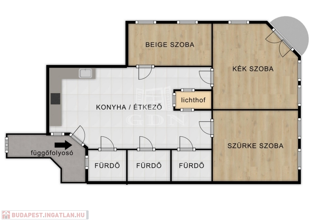 1.szoba (SZÜRKE) : 23 nm + fürdő és wc 3 nm, kilátás az Orczy tér felé