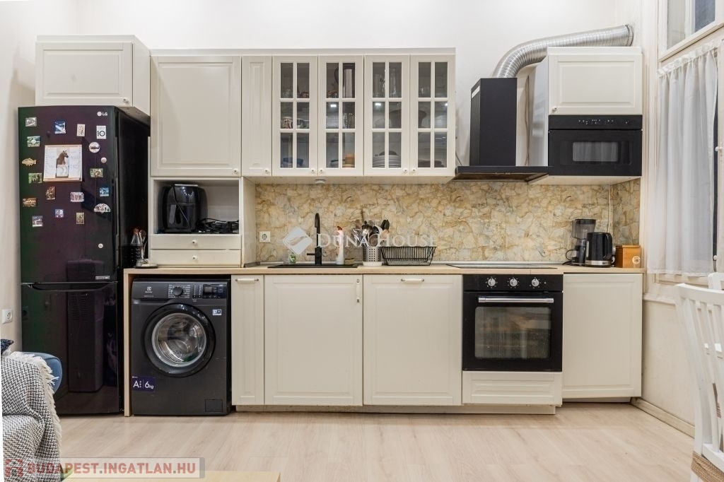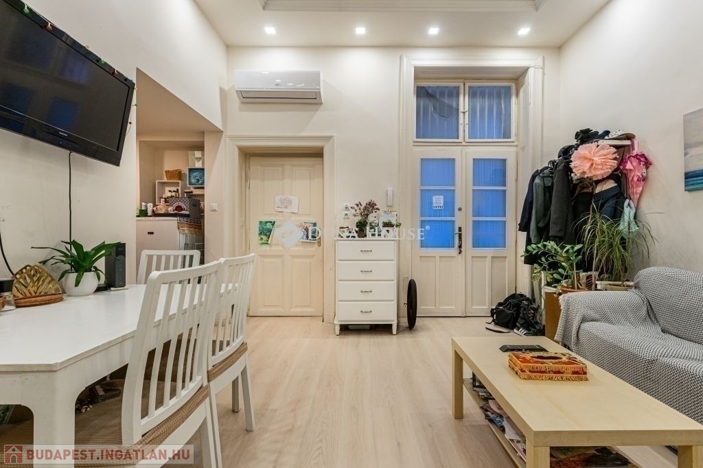 Egyedi ajánlat!! 1 millió Ft/ nm ár!! Használja ki most a 3 %-os lakáshitelt!!Megvételre kínálom ezt a 77 nm alapterületű, 2 szobás - a Rákóczi úttól kb 50 méterre található, az Erzsébet körúthoz közeli - 2019-ben teljeskörűen felújított 2. emeleti lakást.Az ingatlanba belépve szemben találjuk a gépesített konyhát (mosógép, hűtő, elektromos sütő, főzőlap), a folyosóról jobbra található egy különnyíló, galériázott( masszív vasgerenda, faburkolat) szoba (közel 14 nm), amely a csendes udvarra néz. Tovább haladva balra található a fürdő, amely zuhanyzóval van ellátva, majd tovább haladva a világos, csendes, nagyméretű ( 33nm) nappaliba érünk.Az ingatlan per és tehermentes, 1/1 tulajdon, rövid időn belül költözhető.Az ingatlan fűtűs/hűtéséről 3 db inverteres klíma gondoskodik.Közös költség 16.000.- Ft.A házat folyamatosan karbantartják, a lépcsőházat nemrégiben festették ki.Tömegközlekedés szempontjából is kiváló, a 4-es és a 2-es metró kb 2 percre található, a 7-es,99-es busz valamint a 4-es és 6-os villamos szintén pár perc sétatávolságra van.Az utcán mindig található parkolóhely.Megtekintéssel vagy egyéb kérdéssel kapcsolatban állok rendelkezésére a hét bármely napján.A hirdetésben szereplő FIX 3%-os lakáshitel részét képező támogatásokat Magyarország Kormánya nyújtja.