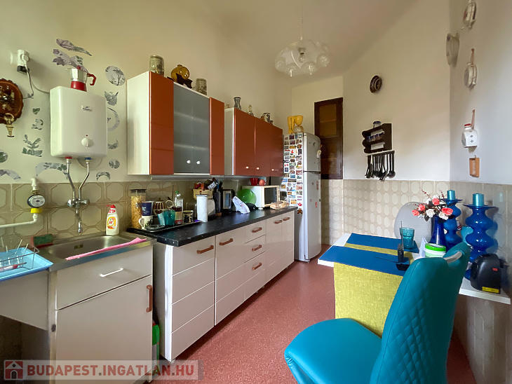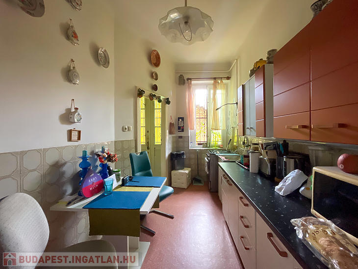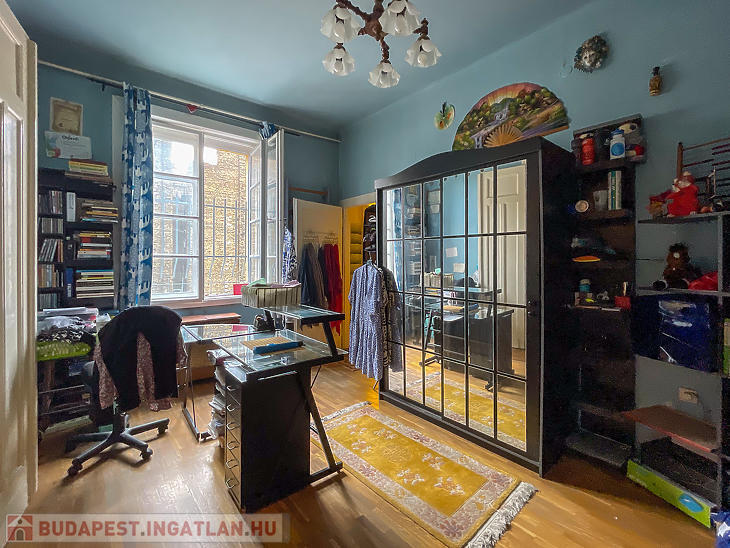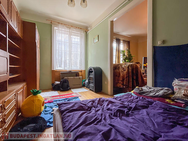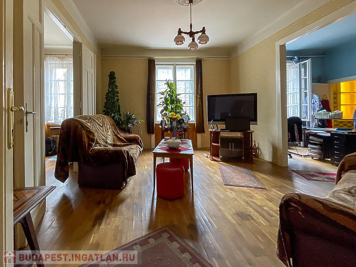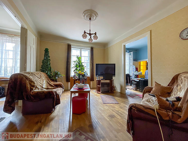 Az ingatlan közepes állapotú, kedvező elosztásának köszönhetően akár két lakássá is alakítható. A négy szobái közül három különnyíló. A szobákban csiszolható, jó állapotú, fa parketta padlózat és fa nyílászárók találhatóak.