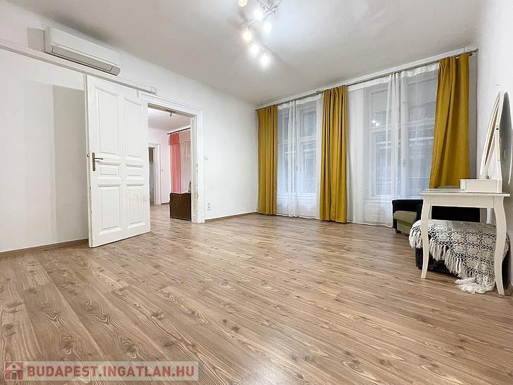 Palotanegyedben emeleti, tágas lakás egy XIX. század végén épült, klasszikus társasházban. Az ingatlan a ház hátsó homlokzati traktusában található, és ezen a szinten egyedüli lakásként foglalja el a hátsó épületszárnyat.