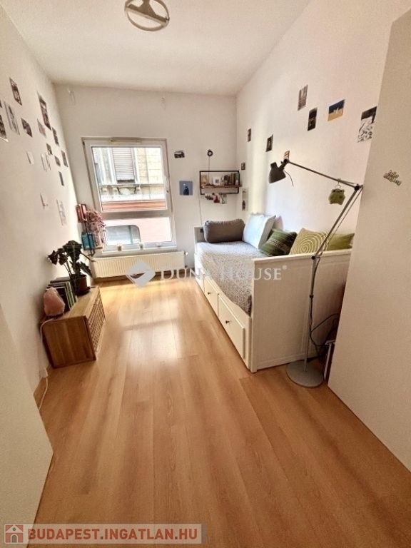 saját zöld belső kerttel kitűnő elhelyezkedés és jó közlekedés, Fecske utca!Budapest VIII. kerületében, a fejlődő Csarnok-negyed szívében található ez a 59 négyzetméteres, 2+1 félszobás lakás, mely a modern, liftes társasház első emeletén helyezkedik el.Az ingatlan az elmúlt időszakban részlegesen fel lett újítva. Külön WC és fürdőszoba biztosítja a kényelmet, az egyik szobában pedig frissen beszerelt klímaberendezés található. A fűtést egy központi gázkazán szolgáltatja, mely szintén nemrég cserélve lett.A lakáshoz tartozó parkolóhely a társasház teremgarázsában megvásárolható 10,8 milliór forintért, így a tökéletes parkolás garantált. Az épület mögött egy szépen karbantartott, közös használatú kert kínál kikapcsolódási lehetőséget a lakók számára.Kiváló infrastruktúra jellemzi a környéket: két metróvonal, több villamos-, busz- és trolibuszmegálló, valamint a Keleti pályaudvar néhány perc sétával elérhető. Emellett könnyen megközelíthető a Blaha Lujza tér, Rákóczi tér, II. János Pál pápa tér, számos park, bevásárló központ, egyetem és egészségügyi szolgáltatás.Ez az ingatlan remek választás lehet első otthonnak, befektetésnek vagy akár bérbeadásra!