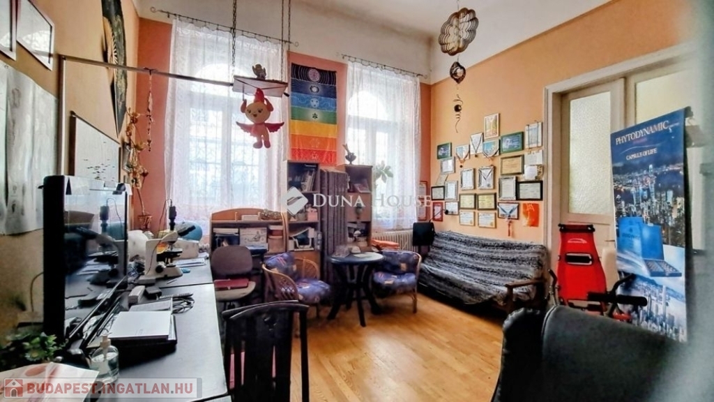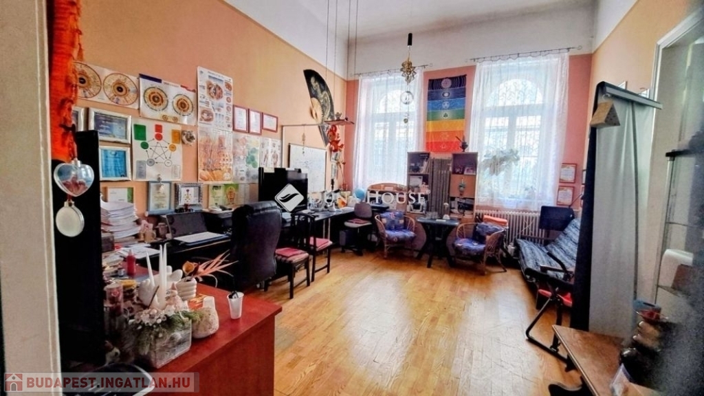 Világos, utcára néző, nagy ablakokkal, két bejárattal, akár 2–3 lakássá alakítható. Gáz cirkós fűtés, eredeti parketta, 4,35 m belmagasság, a villanyvezetékek és a fűtés korszerűsítése megtörtént.