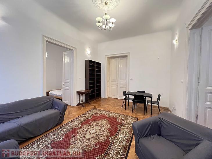 Az ingatlan közepes állapotú, elosztása kiváló: négy tágas szobával és külön konyhával rendelkezik, így ideális választás lehet nagyobb család számára, de befektetési célra is jól hasznosítható. A lakás egyik nagy előnye a 3,90 méteres belmagasság, amely világos, tágas térérzetet biztosít, és akár galériázásra is lehetőséget ad. Az ablakok utcára és belső udvarra egyaránt néznek, így a lakás jól szellőzik, miközben a belső udvar felé eső helyiségek csendesebbek. A közös költség havi 40.850 Ft.