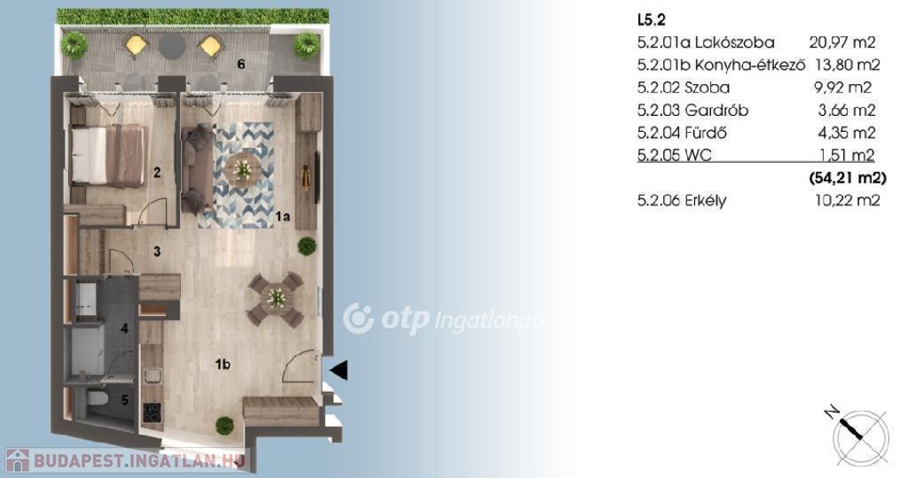 Az eladásra kínált ingatlanok 30,1 nm-100 nm közötti méretben épülnek, egy 6 emeletes, 16 lakásos házban részben erkéllyel/terasszal.