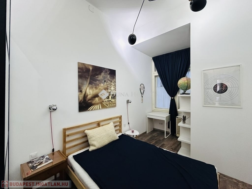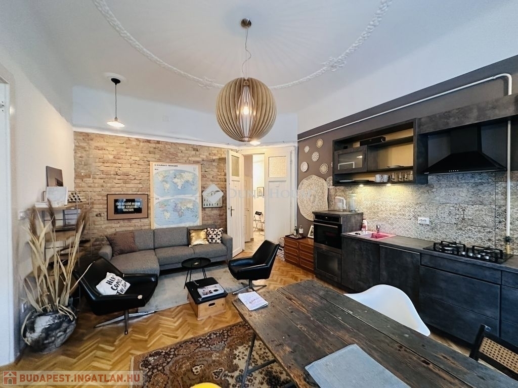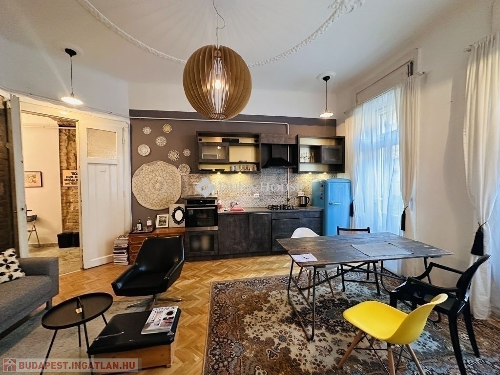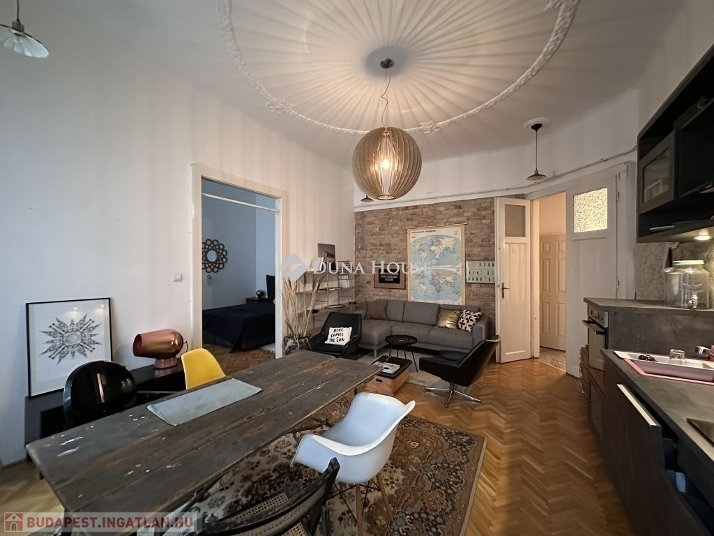 emeleti 73 nm-es lakás egy nagy amerikai konyhás nappalival, 2 szobával külön fürdőszoba, wc. A nappaliból nyílik egy 4 nm-es erkély is. A lakás 2018-ban teljesen fel lett újítva és kapta ezt az állapotot és dizájnt. Minden bútor megtervezett színben és formában. A lakás maximálisan gépesített és bútorozott. Az ingatlannak hihetetlen jó hangulata és terei vannak, igazi vagány otthon a város szívében. Ha kevés a szobaszám akkor az egyik, 23 nm-es szobát két szobára is lehet bontani és így még egy szobát kialakítani. Az ingatlan a ház első emeletén helyezkedik el ahova gyalog és lifttel is el lehet jutni. A ház lokációja szenzációs pár lépésre minden tömegközlekedés, villamos, busz, metró, troli.... A közelben számtalan óvoda, közép és általános iskola, egyetem. Bevásárlási lehetőségek között is válogathat az ember, Lidl, Aldi, CBA, SPAR... Szintén pár lépésre a Corvin pláza, Corvin sétány és maga a Corvin mozi is. Érdemes megnézni és megismerni ezt a lakást mert tökéletes választás lehet ha a város szívében eres otthont, közel mindenhez de mégsem a legnagyobb zajban.