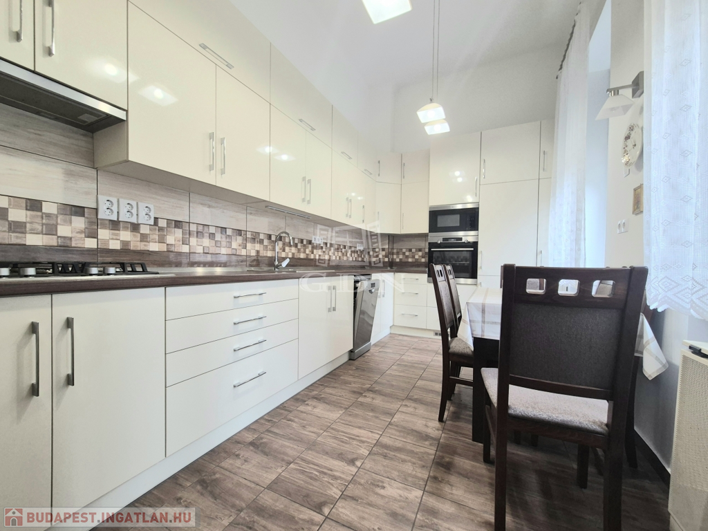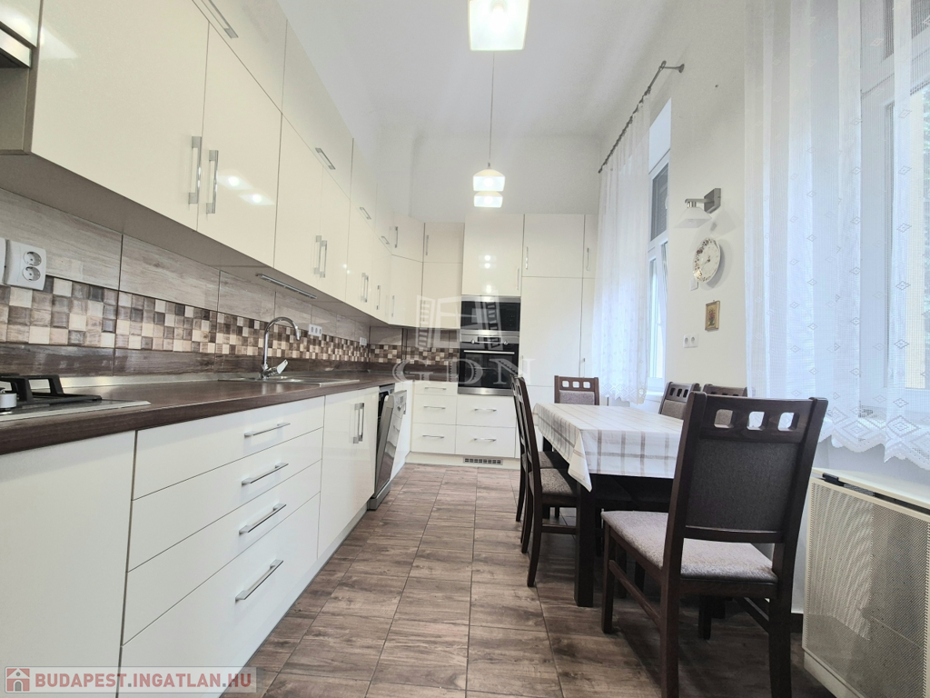 VIII. kerületben, egyirányú-csendes mellékutcában, kis lakásszámú, jó állapotú, két szintes társasház első emeletén kínálok eladásra, egy 79 m2-es, utcai nézetű-világos, felújított, ablakos konyhás, két egymásból és külön is nyíló szobás, galériázott, minőségi - gépesített konyhabútorral rendelkező téglalakást.