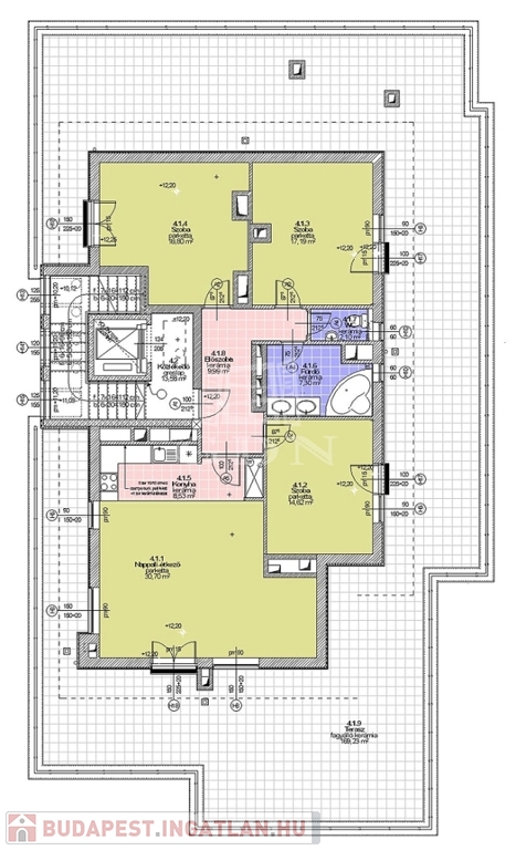 Tetőterasz: 170 m², körbefutó, napfényes