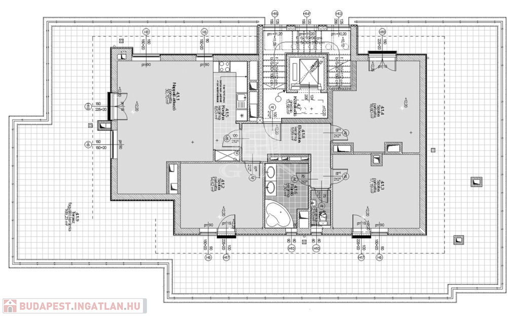 109 m² lakótér + 170 m² körbefutó terasz