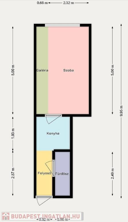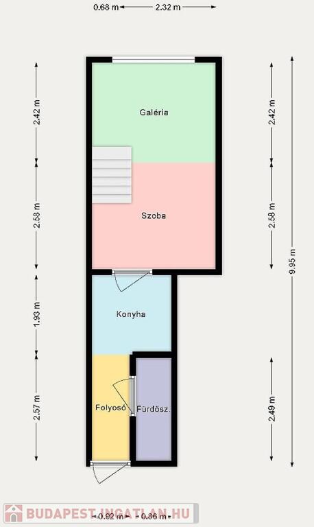 A praktikus galériának köszönhetően a tér jól kihasználható, ideális első lakásnak vagy befektetésnek is.