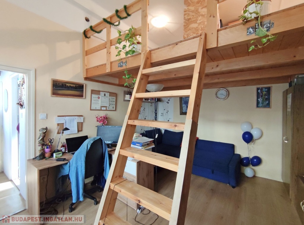 Eladásra kínálunk Budapest X. kerületében, a Mázsa tér szomszédságában egy világos, 1,5 szobás kétgalériás, 39 + 19 m²-es, egyedi kialakítású tégla lakás.