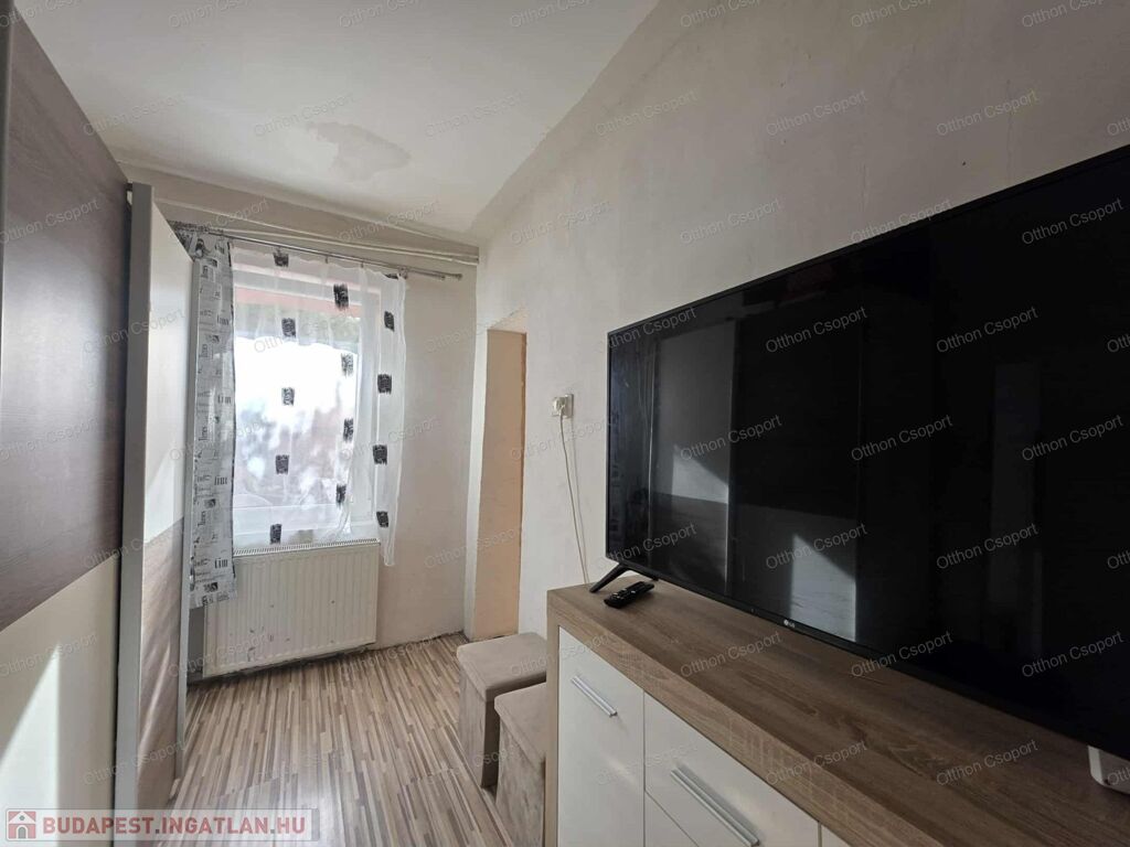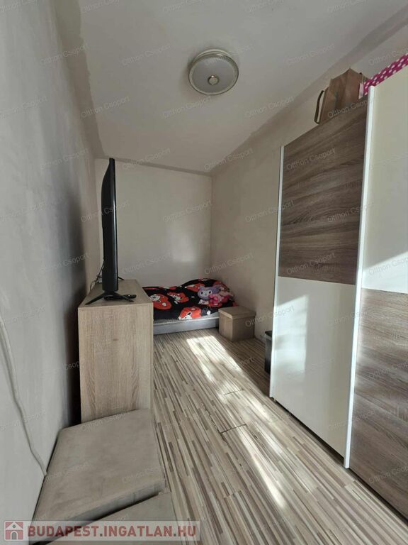 Eladó Kőbánya kertvárosi részén egy 38 négyzetméteres, konyhából, 2 külön nyíló szobából és fürdőszobából álló, saját kerttel rendelkező sorházi lakás. A telek 200 négyzetméteres.