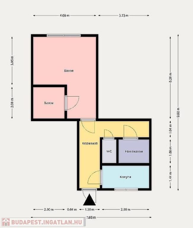 A 20 m²-es szoba egy részét gipszkarton fallal leválasztva kialakításra került egy 4 m²-es hálórész. A szoba világos, klímával felszerelt.