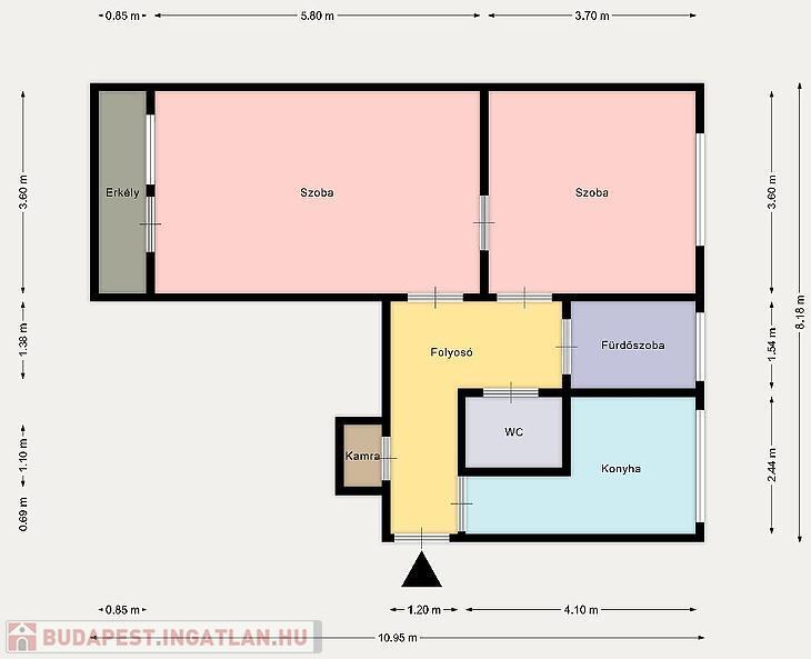 Az ingatlan elosztása kiváló, a fürdőszoba és a mellékhelyiség külön helyezkedik el, a két szoba is külön nyíló, de akár egymásból is megközelíthető.