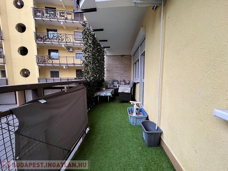 • nagy méretű, belső udvarra néző tágas erkély tárolóval, ahol kényelmesen elférnek a kerti bútorok vagy növények,