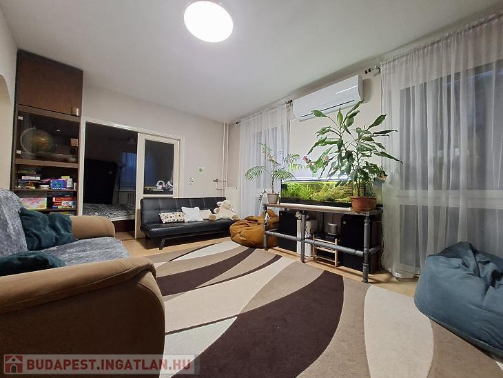 A lakás praktikus elrendezésű: 2 tágas, teljes értékű szoba és 2 félszoba biztosít kényelmes életteret akár családok számára is. Az ingatlan jó állapotú, műanyag nyílászárókkal felszerelt, valamint modern fűtőtestek gondoskodnak a hatékony hőleadásról. A komfortérzetet egy új, 5,3 kWh teljesítményű klímaberendezés is növeli, amely a nyári hónapokban biztosít kellemes hőmérsékletet.