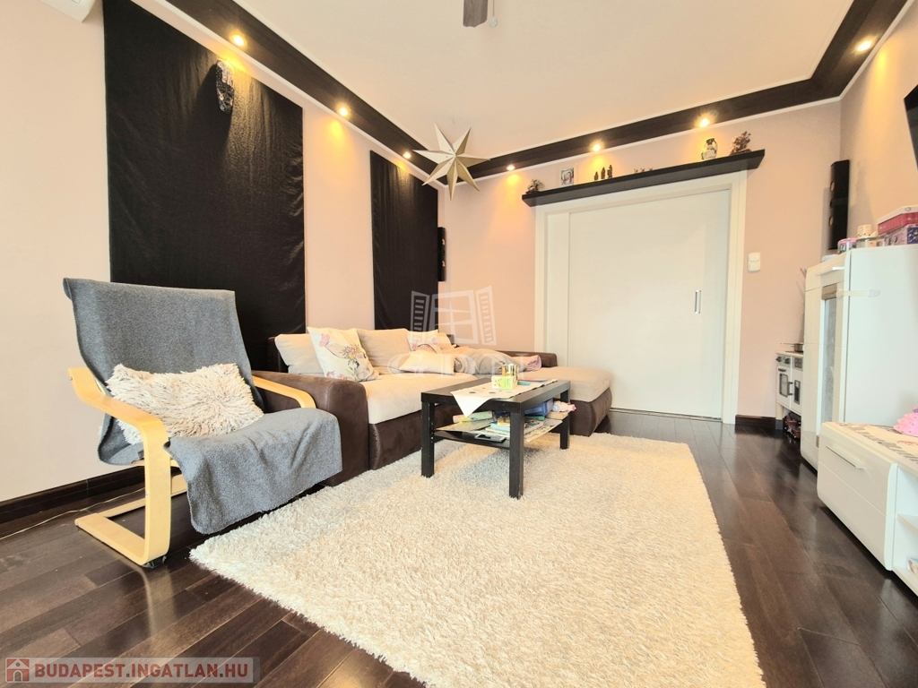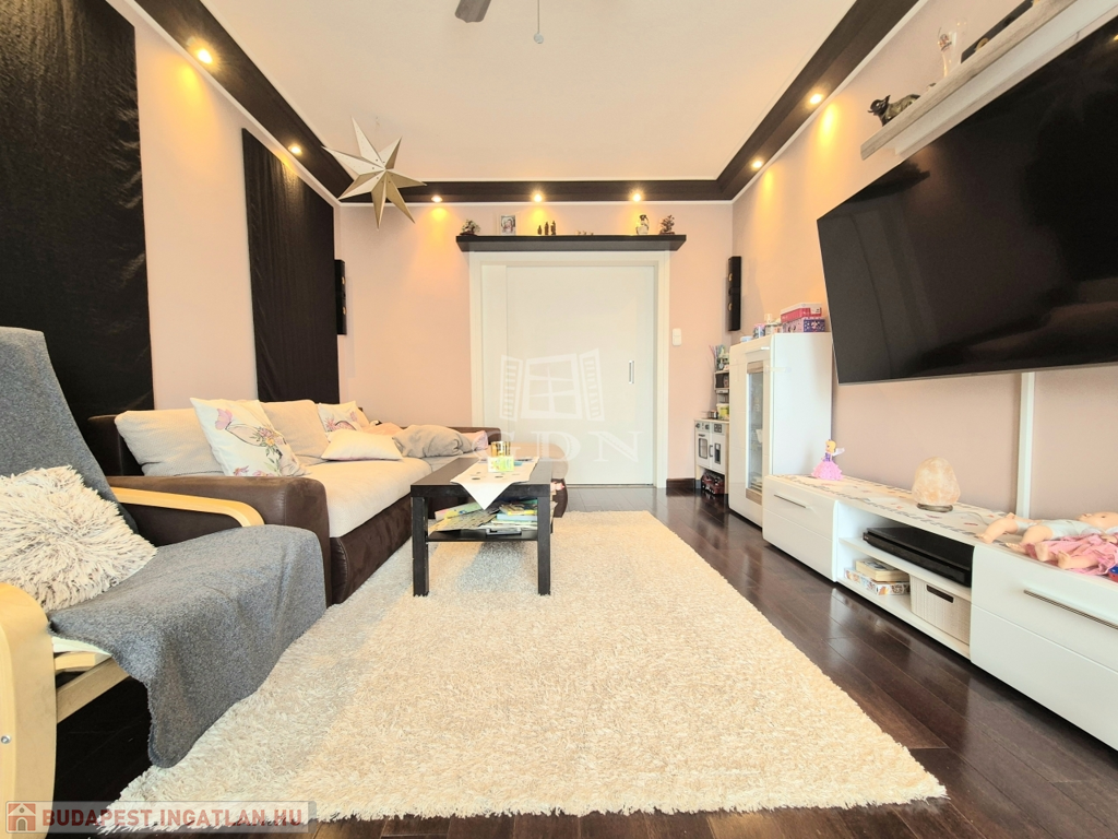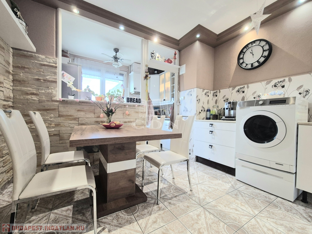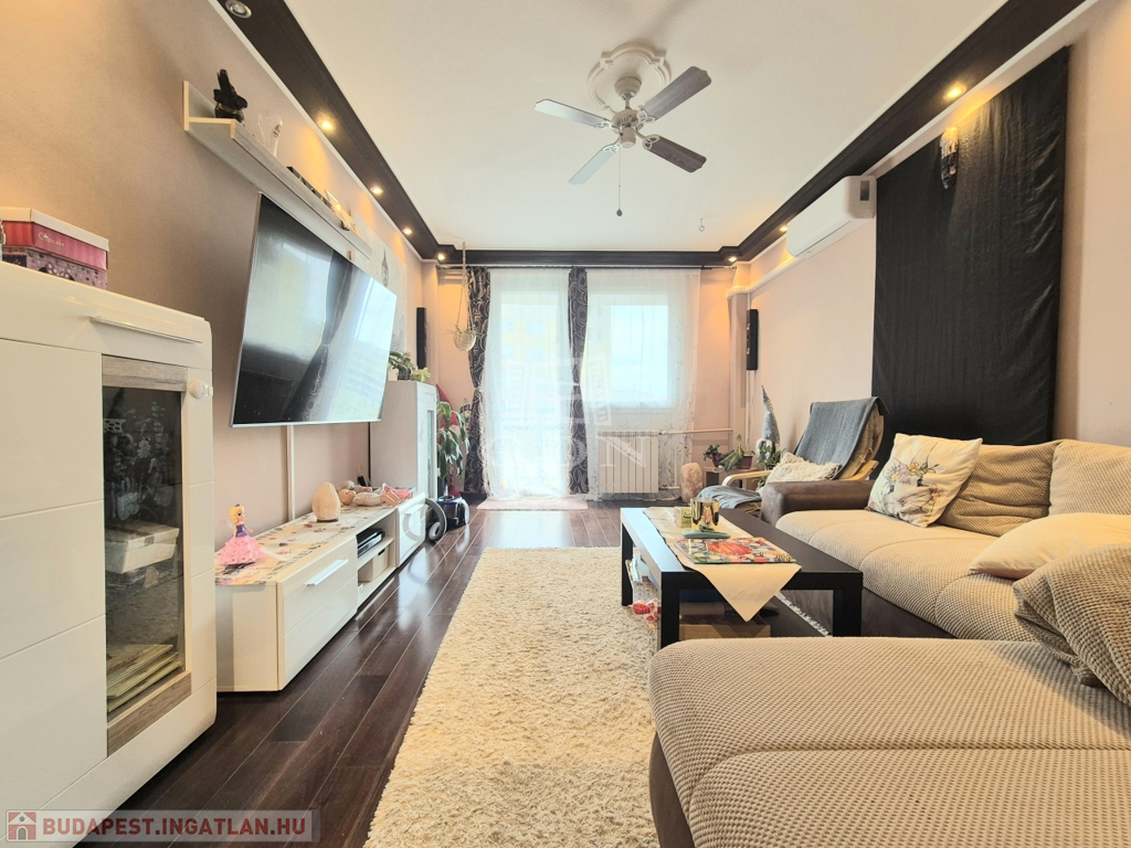 X. kerület metróhoz közeli részén, parkos környezetben, kifizetett panelprogramos társasházban kínálok eladásra, egy 6. emeleti, 74 m2-es, körbenapozott, erkélyes, ablakos konyhás, 2+2 fél különnyíló szobás, teljeskörűen felújított ( műanyag nyílászárókkal, egyedi hőmennyiségmérős radiátorokkal, korszerű villany, vízhálózattal, tetszetős beltéri ajtókkal szerelt, hideg- meleg burkolat cserén átesett) klimatizált