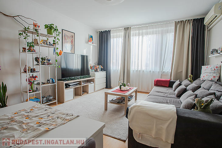 Az ingatlan egy 10 emeletes panelházban található. A lakás déli tájolású, világos és kellemes hangulatú, továbbá klimatizált, így nyáron is komfortos otthont biztosít.