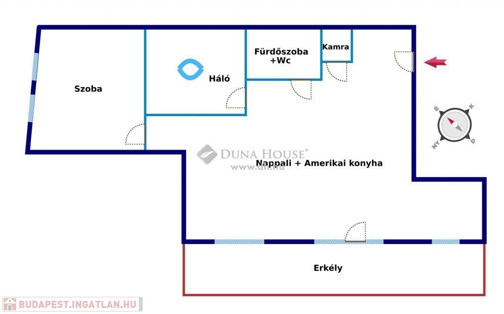 A lakás központi életterét egy 46m2-es, amerikai konyhás nappaliszoba adja. Minden további helyiség, azaz két háló, egy fürdőszoba + wc, és egy kamra helyiségek is innen megközelíthetőek, mind külön bejáratúak. A nappaliból a 16m2-es, tágas erkélyre is kiléphetünk. Itt akár egy kiülő rész, és egy elektromos grill is kényelmesen elhelyezhető.