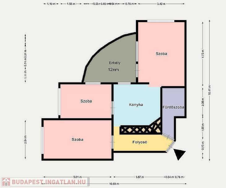 A lakás alapterülete 61 nm, amelyhez egy tágas, 12 nm-es erkély tartozik, ahonnan gyönyörű panorámás kilátás nyílik.