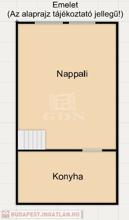 Az alsó szinten található a hálószoba és a fürdő, az emeleti szinten pedig egy tágas nappali kapott helyet – ideális elrendezés kényelmes mindennapokra.